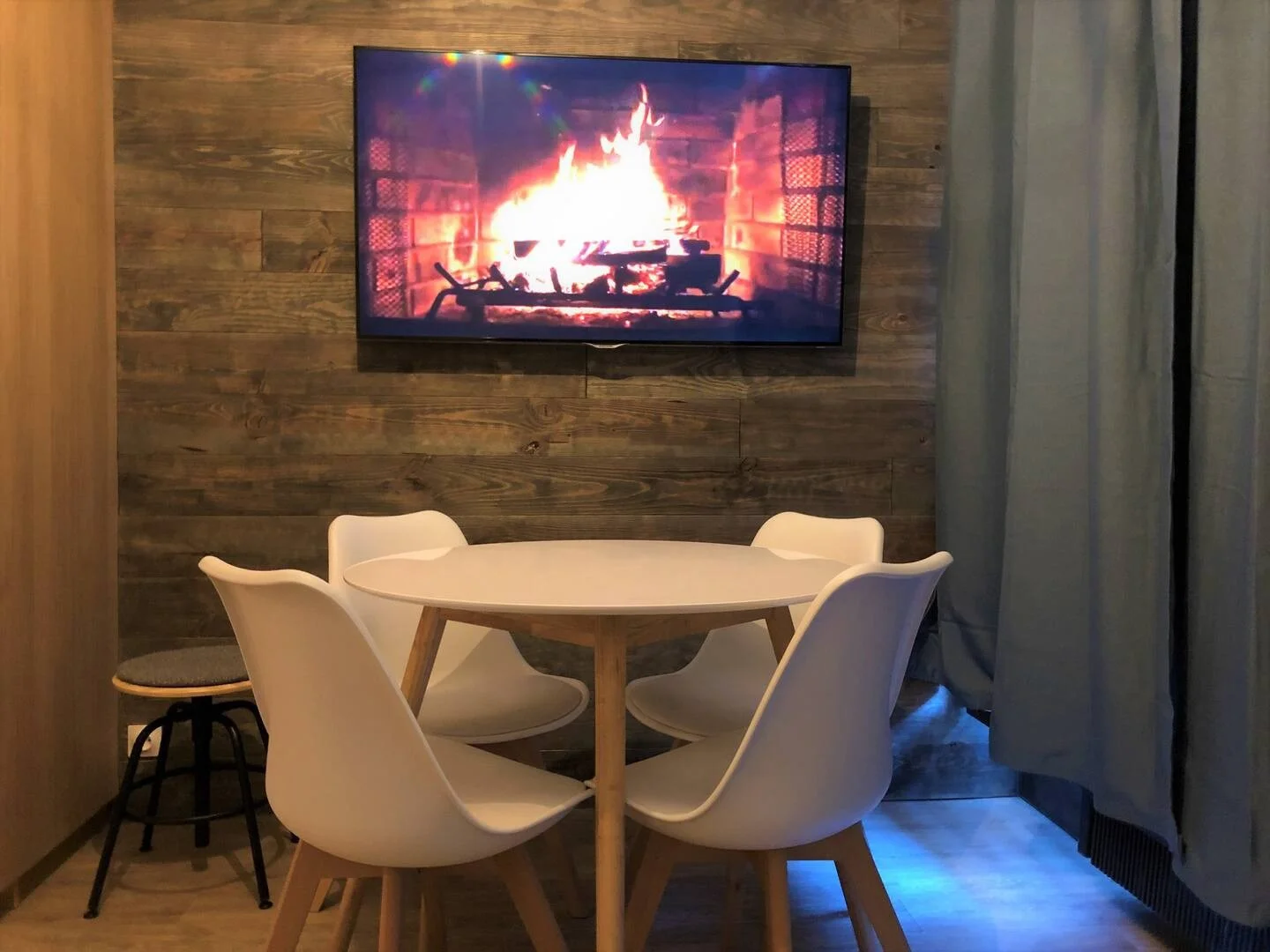 Woonkamer: televisie, slaapbank voor twee personen.